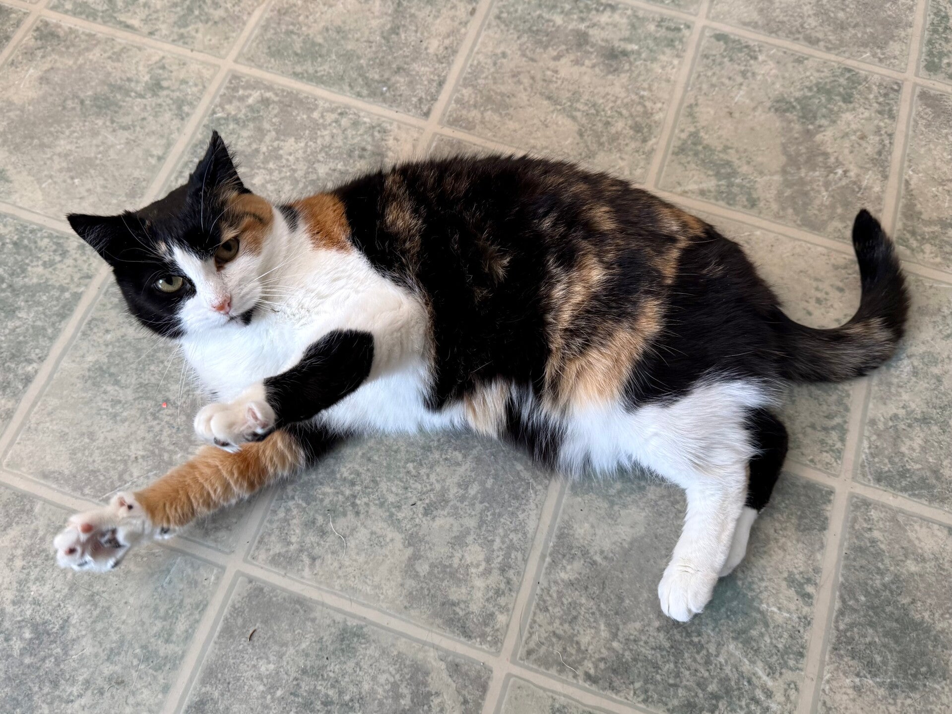 Depuis son sauvetage il y a un an, Melody vit exclusivement à l’intérieur et profite pleinement de son foyer. Elle aime jouer, faire ses griffes sur son arbre à chat, mais sa véritable activité favorite reste les longues siestes, bien confortablement installée dans son coussin.