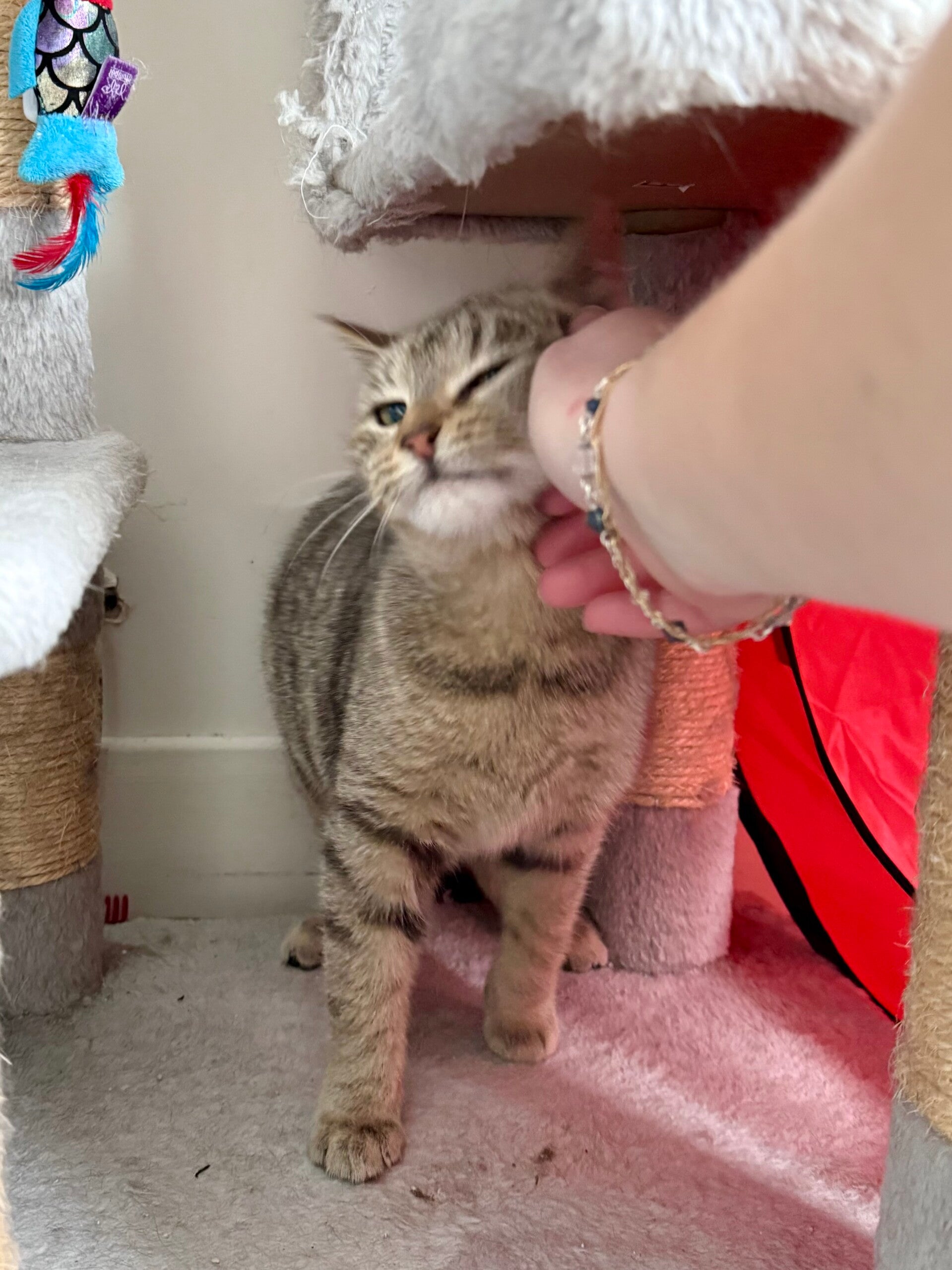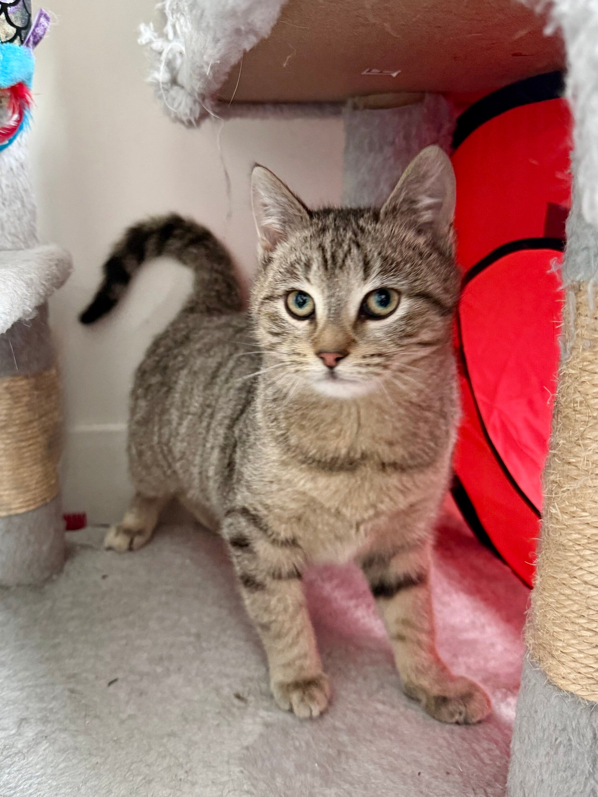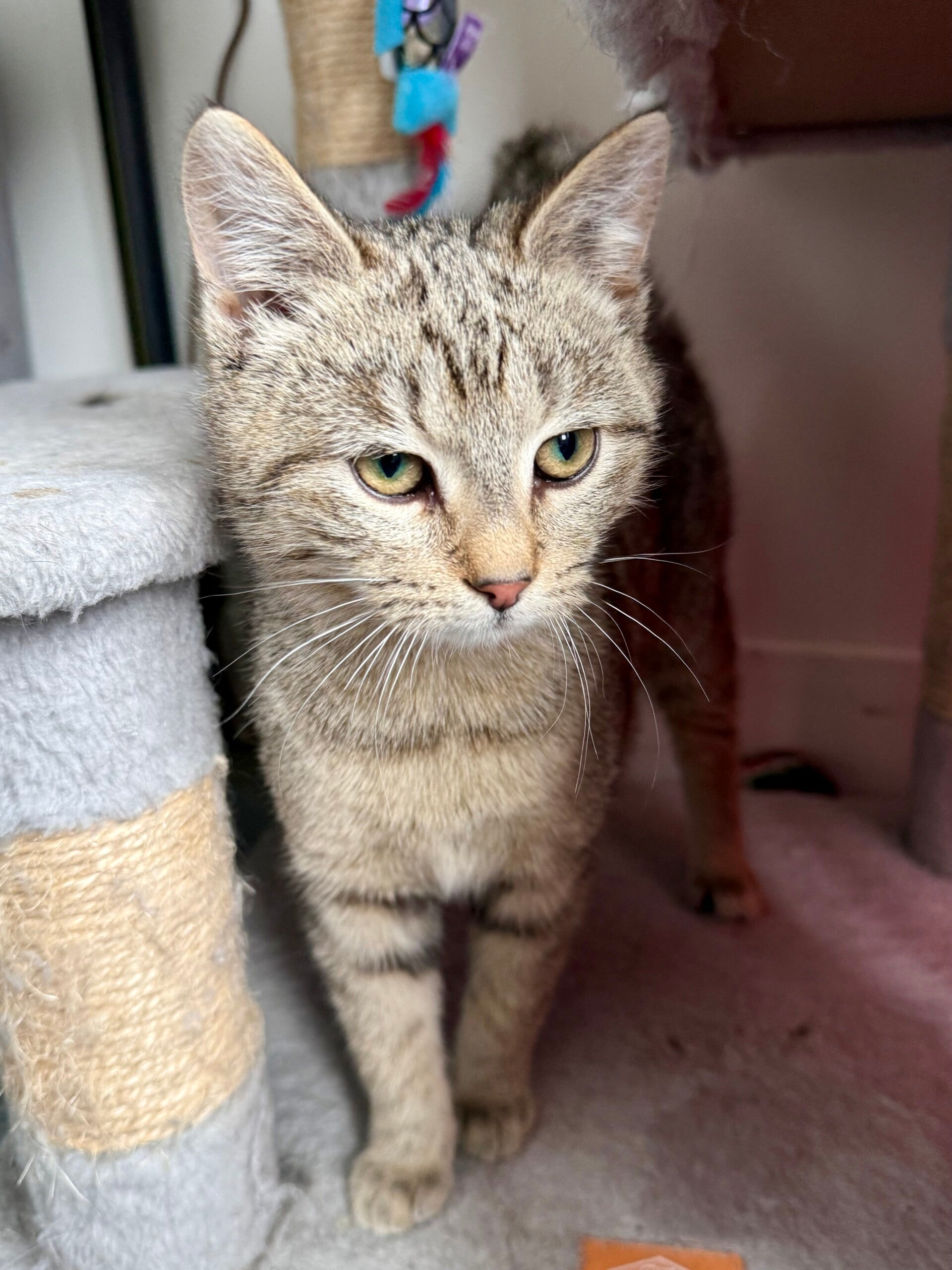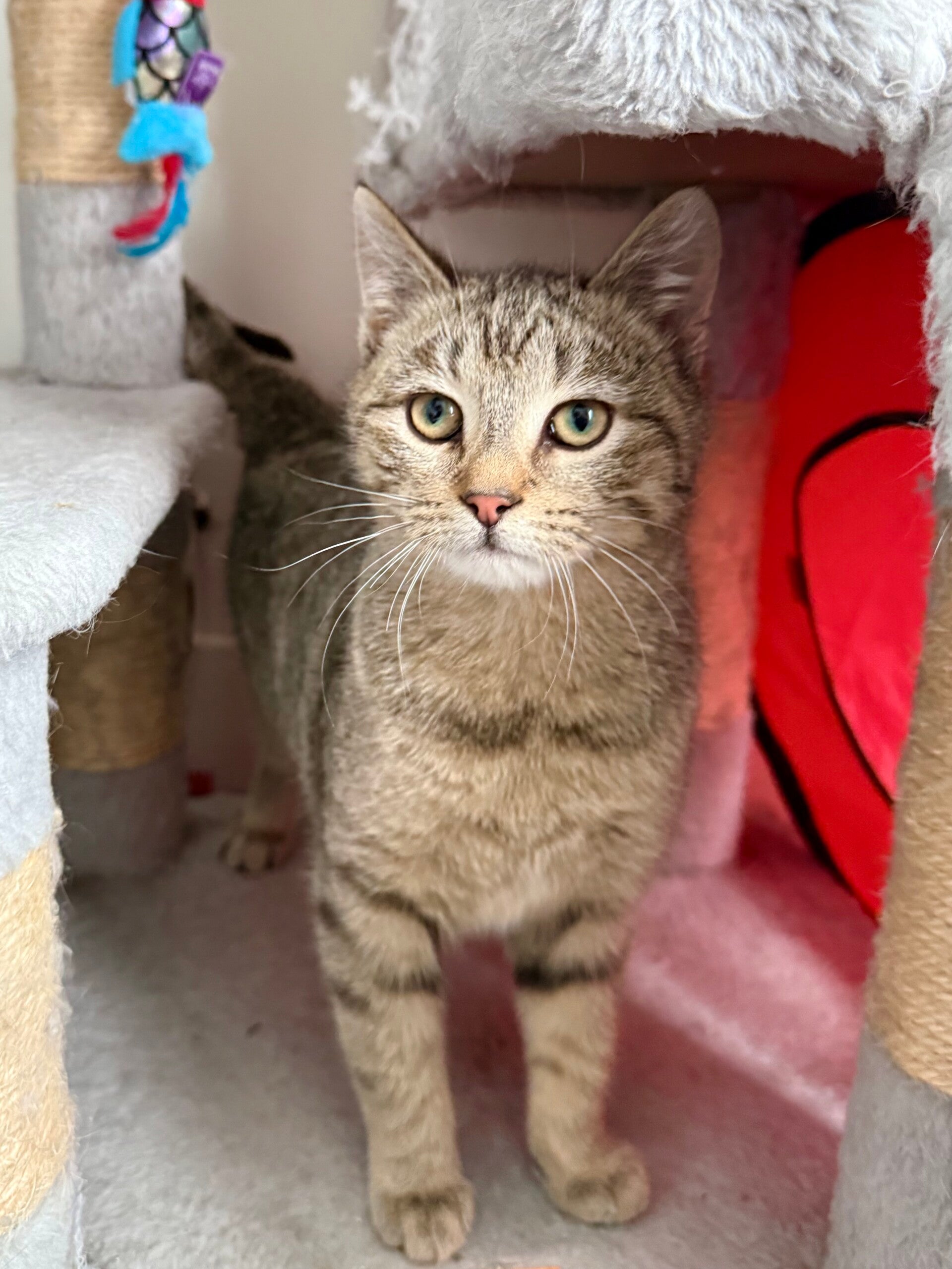 Cortina est une jeune chatte absolument adorable. Un peu timide au premier abord, il ne suffit pourtant que d’une caresse pour qu’elle se dévoile complètement. Elle se met alors à ronronner à profusion, cherche les mains pour obtenir encore plus d’attention, se roule et ne sait plus où donner de la tête pour attirer les câlins, même lorsque le regard se détourne. Il est même difficile de la prendre en photo tellement elle bouge pour obtenir de l’attention! Extrêmement attachante et en quête de présence, Cortina fera une merveilleuse compagne pour une famille qui souhaite partager son quotidien avec un chat affectueux et proche des humains. 💕