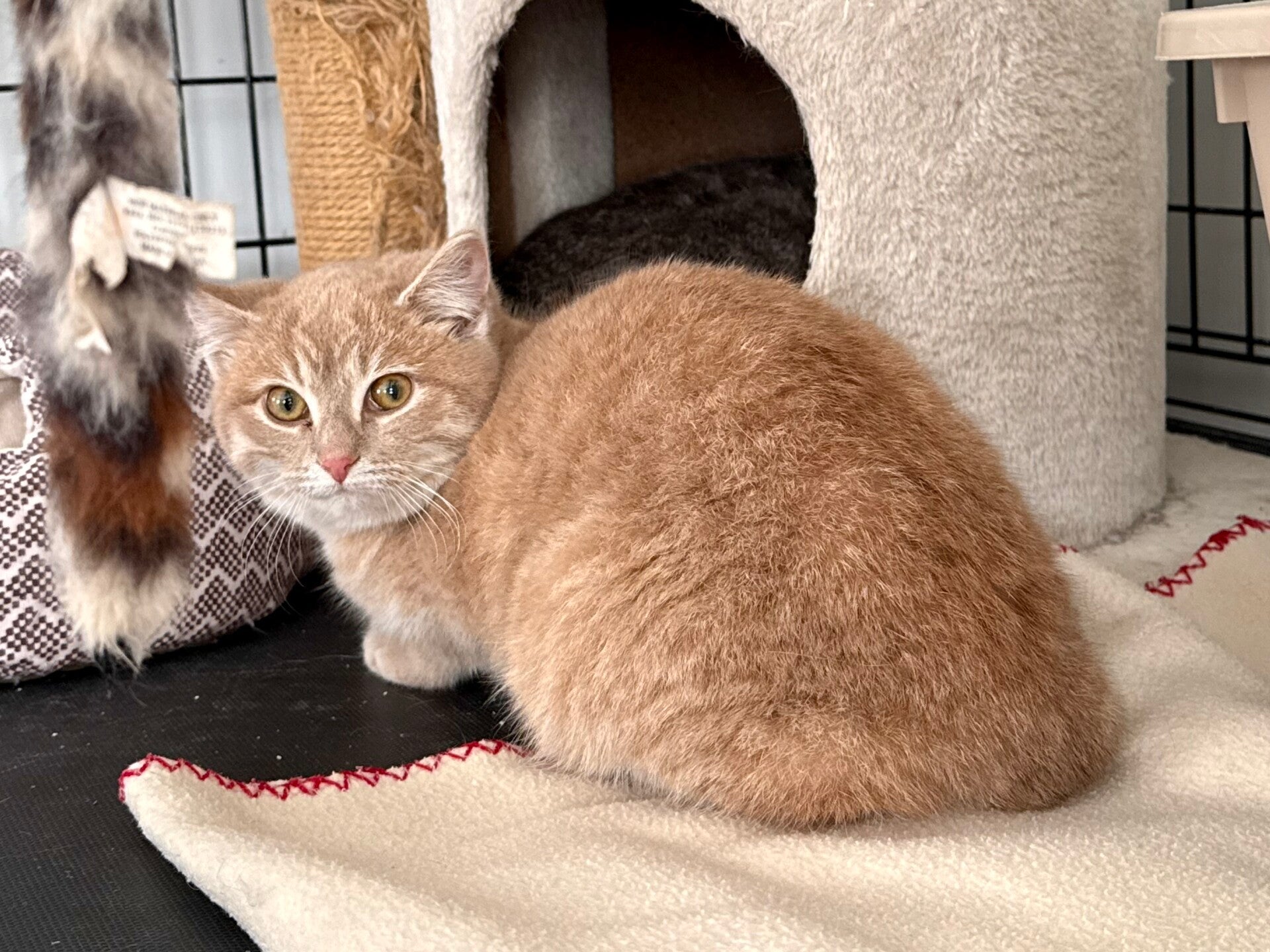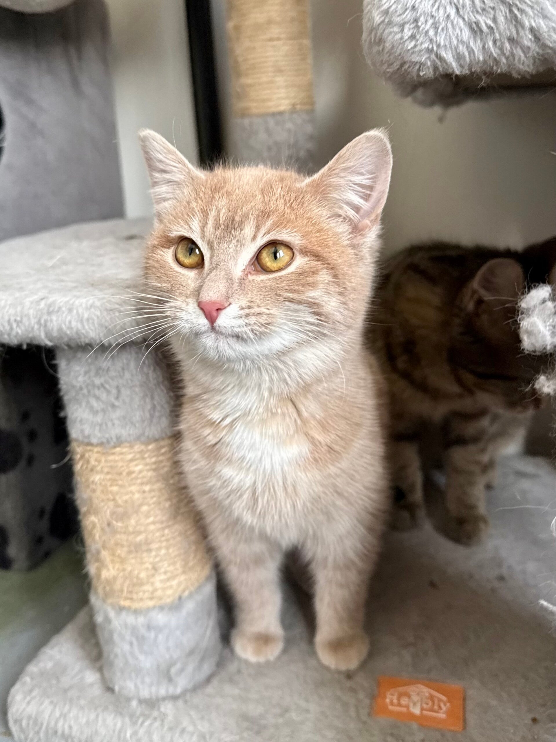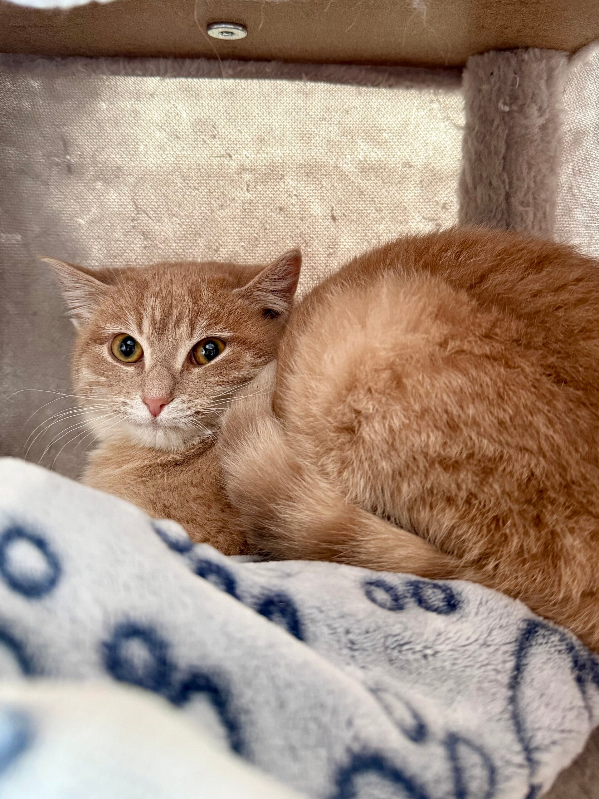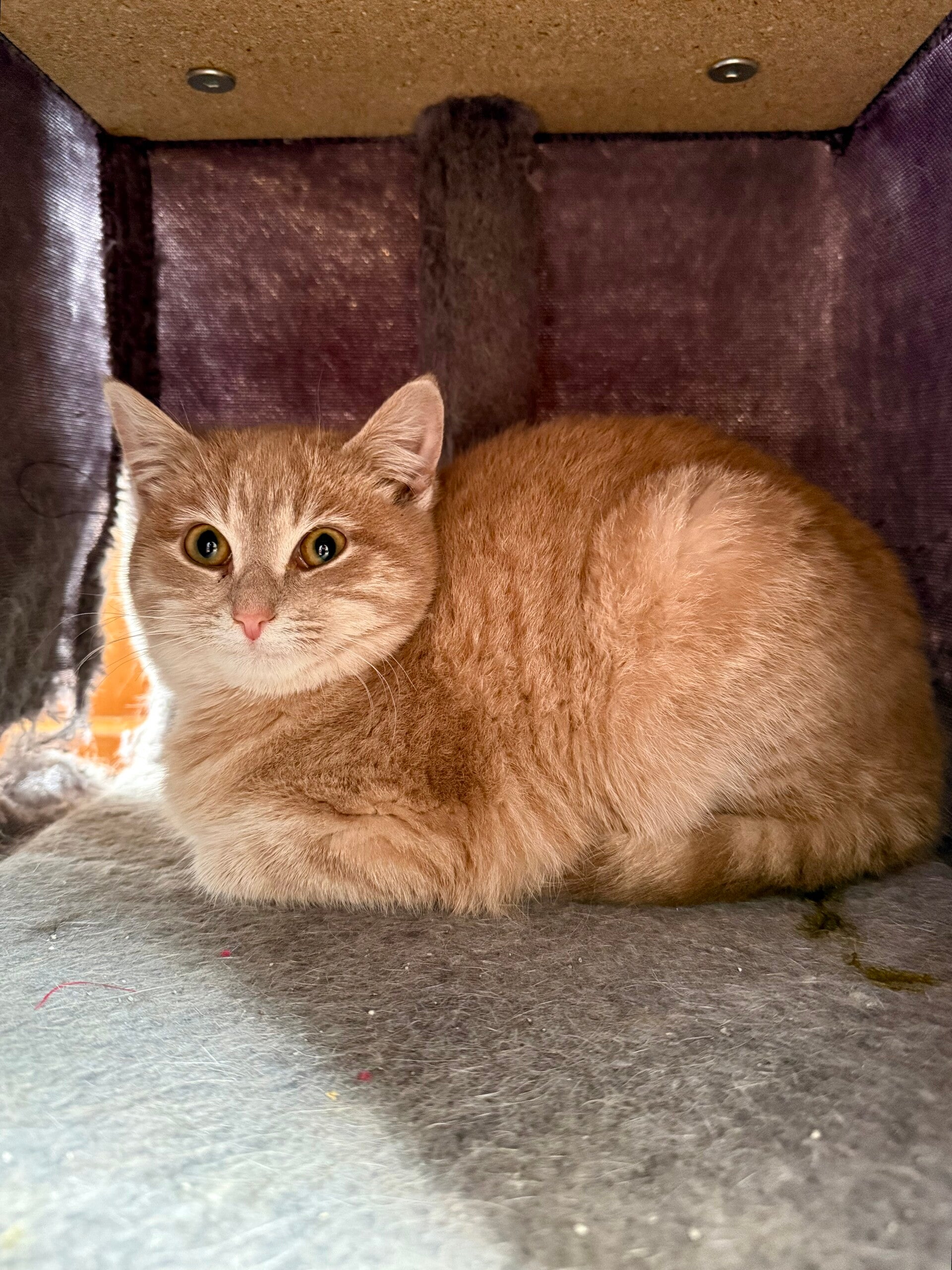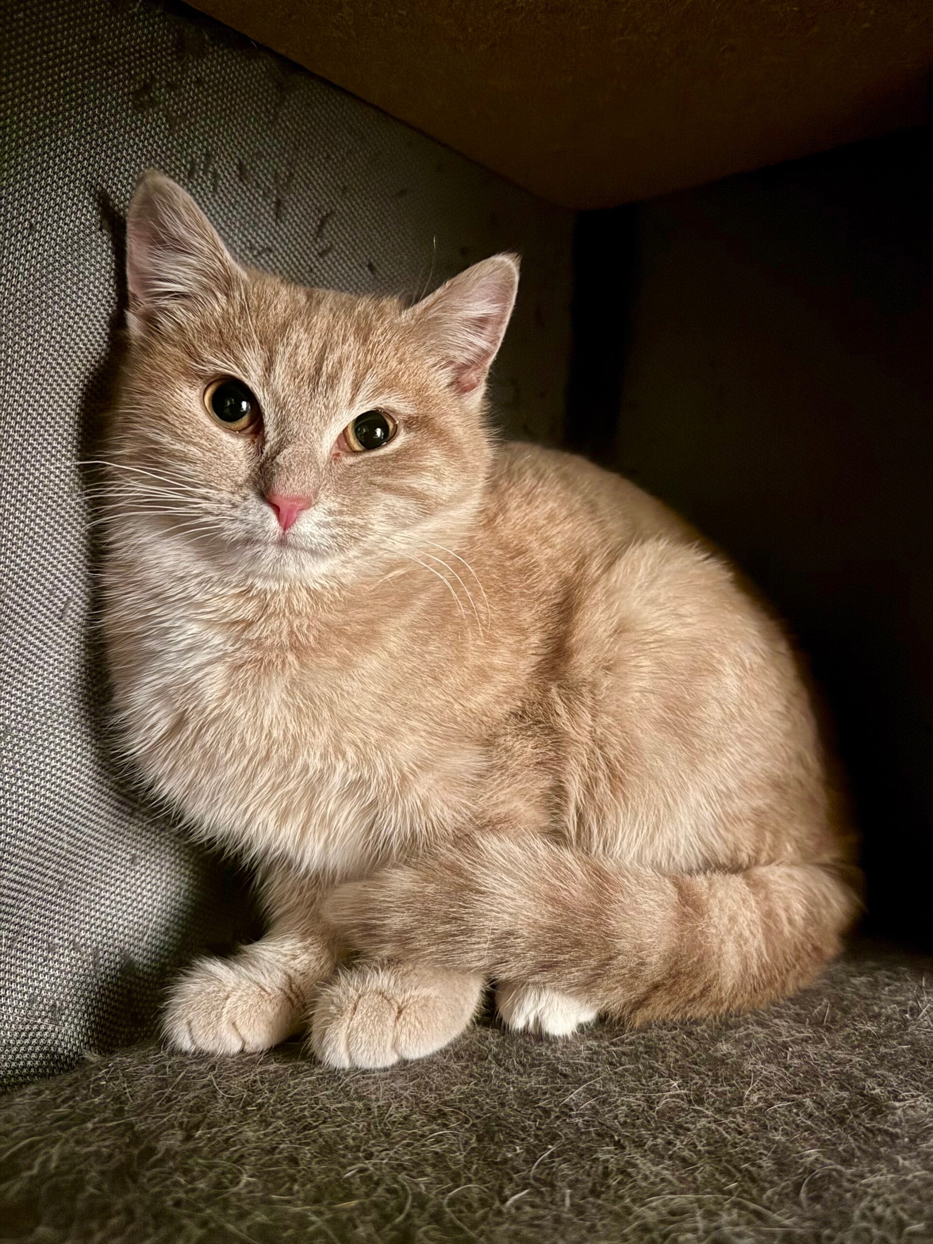 Sarah is a young cat who is still a little shy, but with a wonderfully gentle temperament. She is slowly learning to trust humans. Each day, she allows herself to be handled more easily and enjoys these tender moments more and more, purring nonstop when she feels safe and comfortable.
