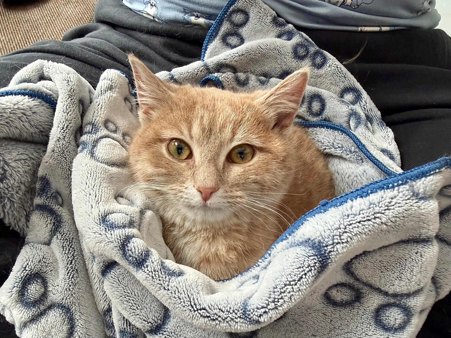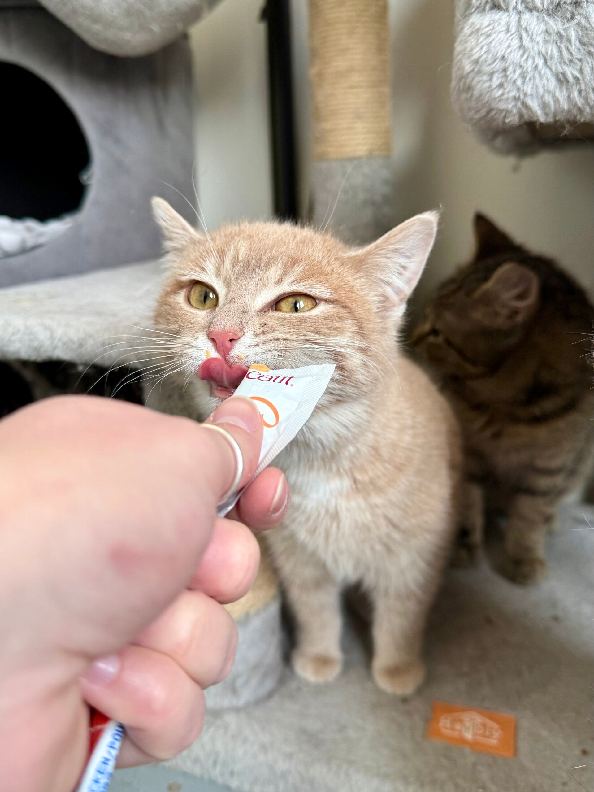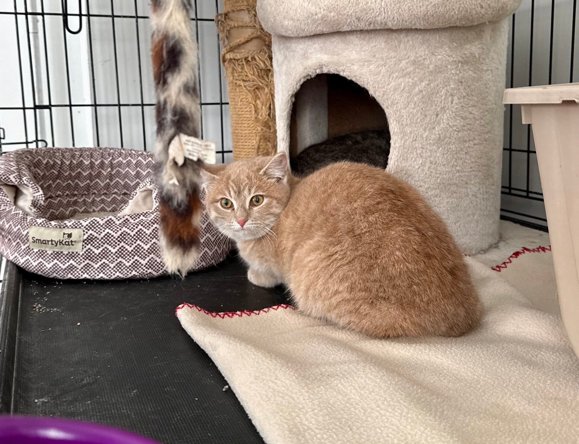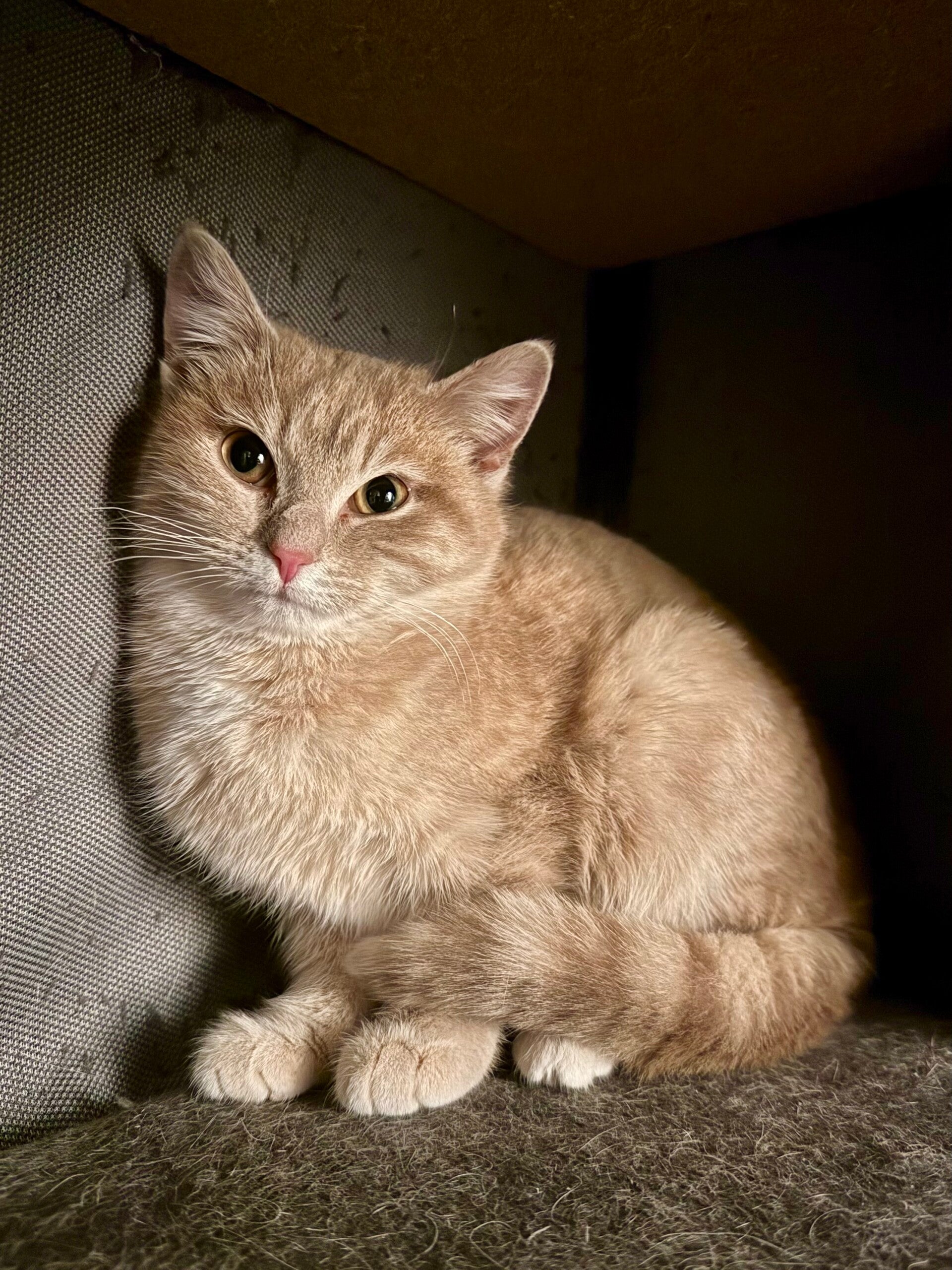 Sarah is a young cat who is still a little shy, but with a wonderfully gentle temperament. She is slowly learning to trust humans. Each day, she allows herself to be handled more easily and enjoys these tender moments more and more, purring nonstop when she feels safe and comfortable.